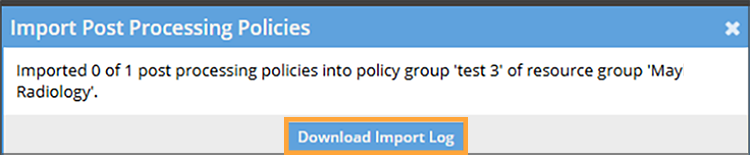Rows of Post-Processing Rules data that fail during validation or processing are not imported. Failed rows do not prevent the system from importing successful rows. If any rows fail, the confirmation window displays the number of successful uploads and the total number of attempted uploads. Newly imported policies display with a highlight until the user refreshes the page.